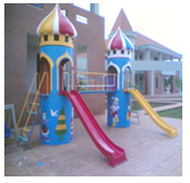 KT: (D550 x R340 x C350)cm Khung chân sắt ống 60 dày 2,5ly, khung sàn V4 dày 3ly, tay cầu thang, lan can 21 dày 1,1ly, sơn dầu nhiều màu. Mặt sàn , bậc thang, máng trượt, mái chòi bằng nhựa composite.