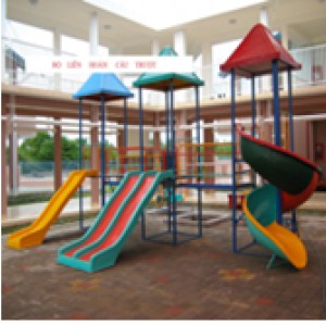 KT: (D400 x R100 x C350)cm Khung chân sắt ống 60 dày 2,5ly, khung sàn V4 dày 3ly, tay cầu thang, lan can 21 dày 1,1ly, sơn dầu nhiều màu. Mặt sàn , bậc thang, máng trượt, mái chòi bằng nhựa composite.